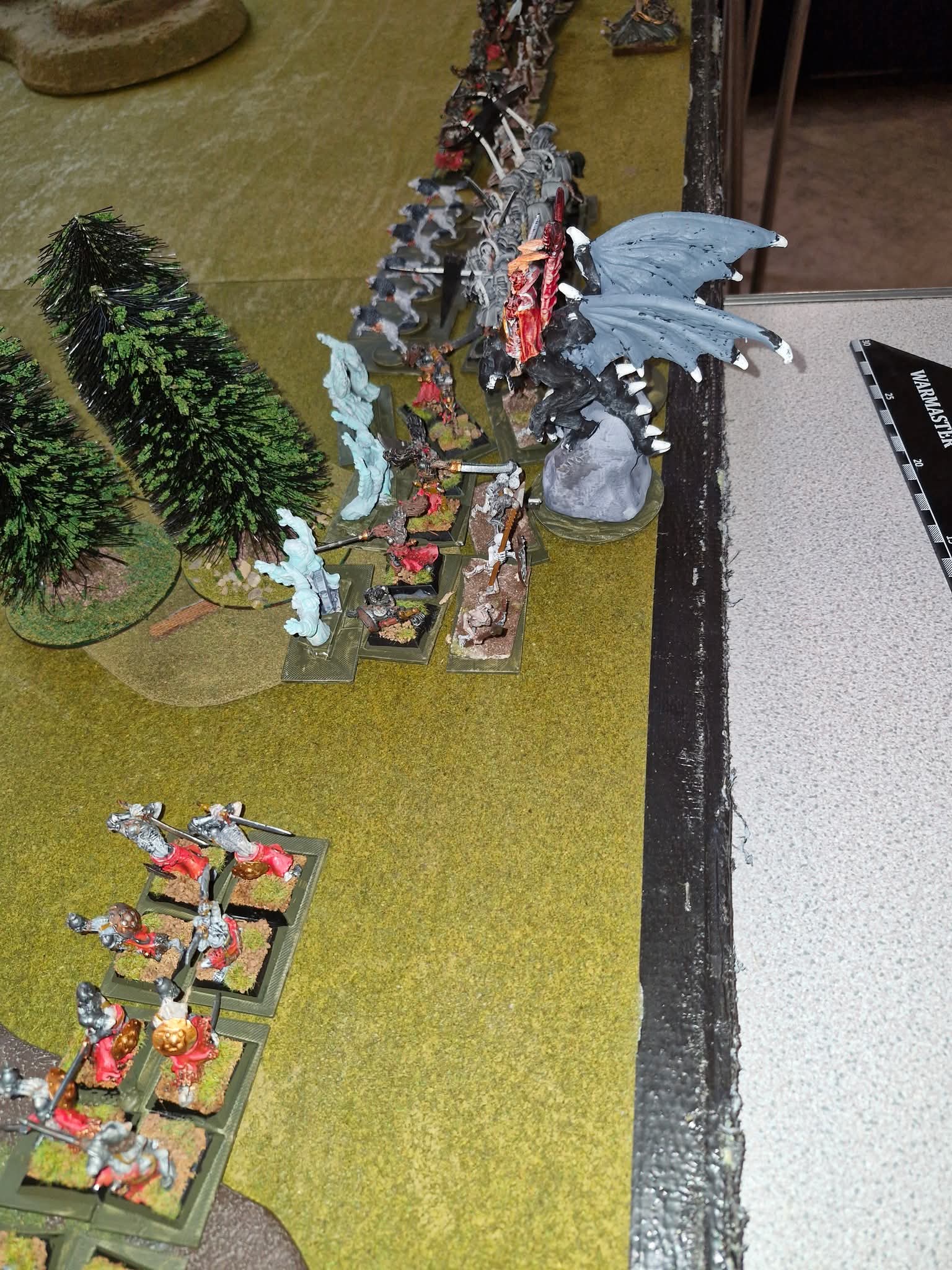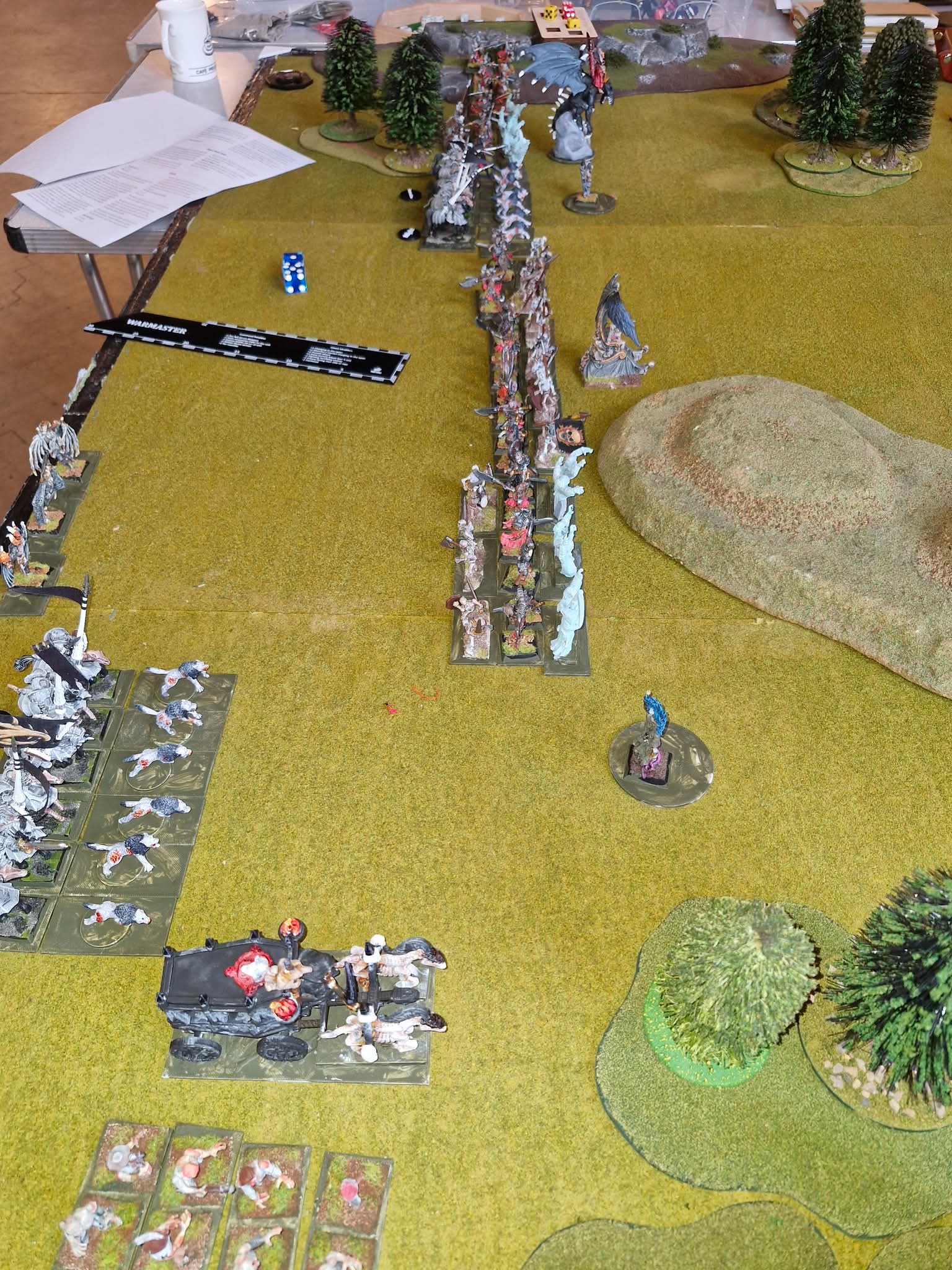 So, 2000 point armes ready, table prepared with suitable terrain, armies deployed lazy wargamer style on the table side closest to the players.