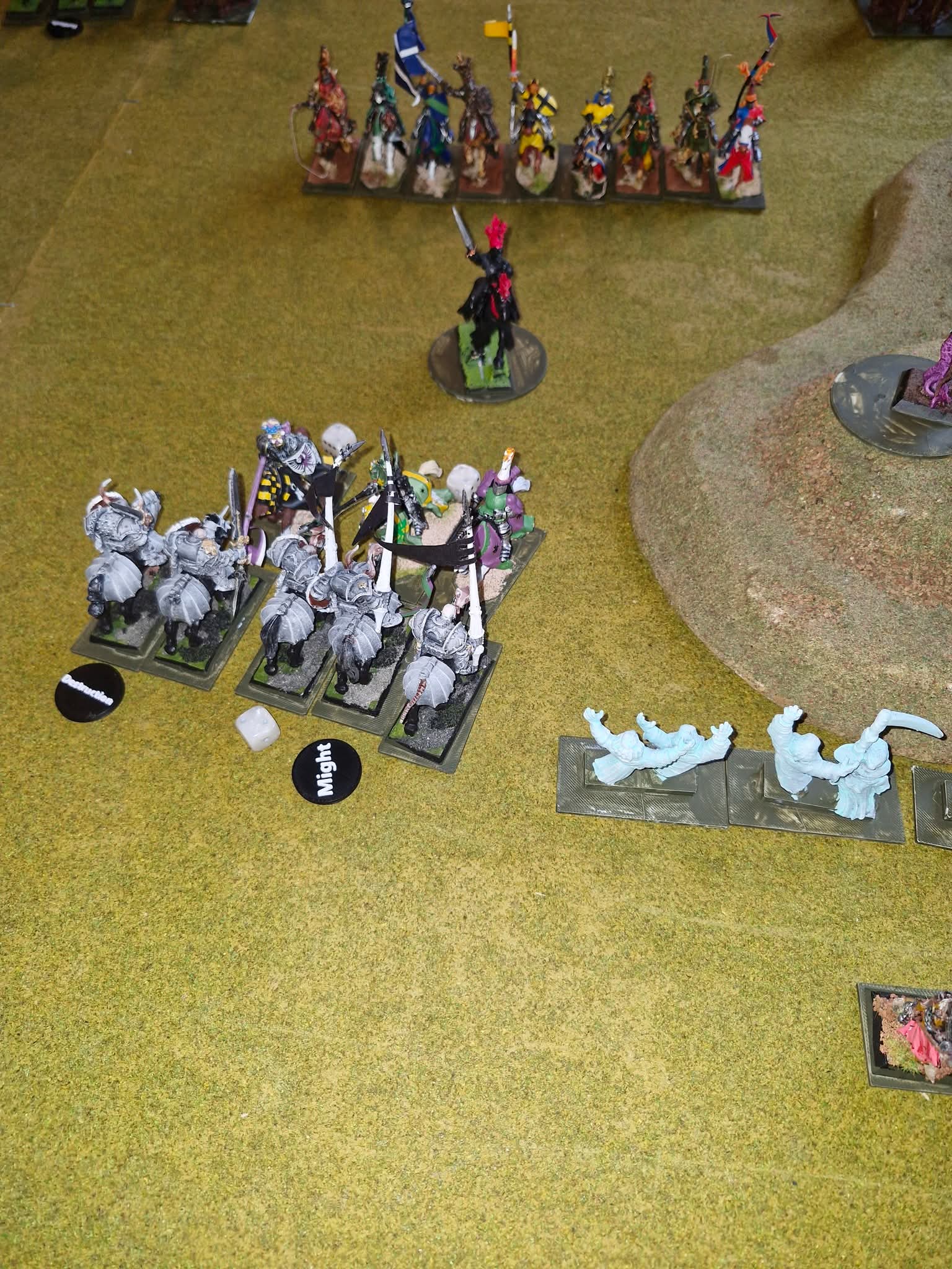 The second line of Knights charged home to beat back the Ethereal hosts. The Pegasus knights and the Grail knight stomped all over the Dire Wolves and then advanced into the remaining undead infantry.